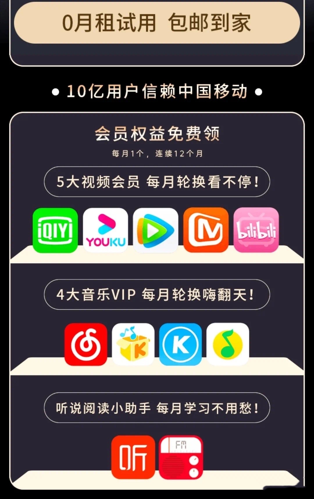 2.中国移动精品APP放心用:包括咪咕视频、咪咕音乐、咪咕直播咪咕阅读、咪咕快游、139邮箱、和彩云、MM应用商城。